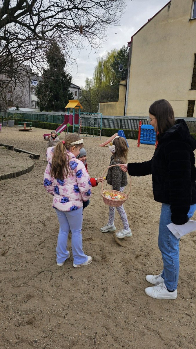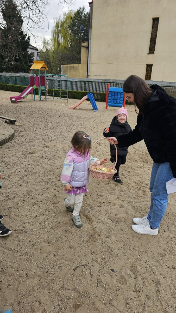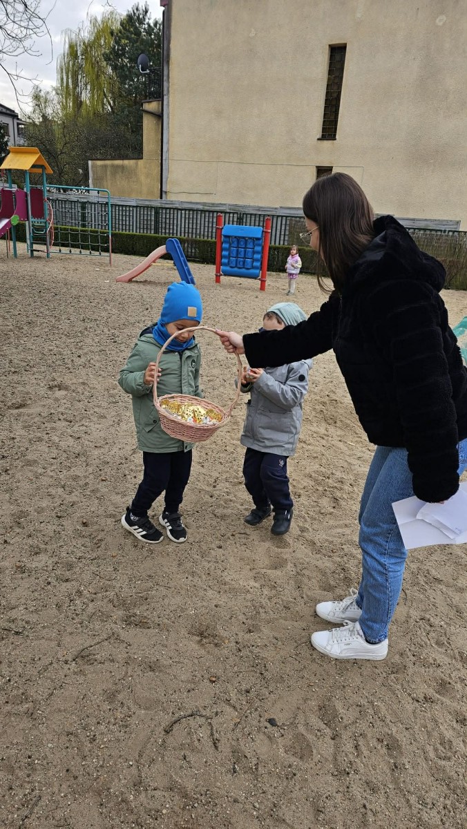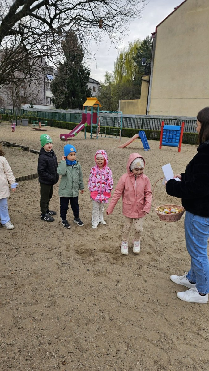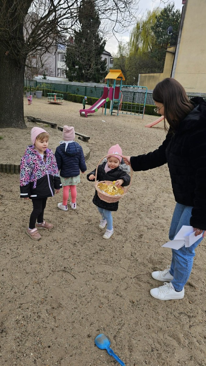 Jeszcze przed Wielkanocą dzieci z grupy V brały udział w świątecznym szukaniu jajek. Mali tropiciele odnaleźli wszystkie jajeczka, a tym samym zapełnili koszyk.